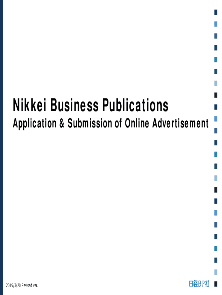 Nikkei Business PublicationsApplication & Submission of Online Advertisement2019/3/20 Revised very. Ad Application / Submission Table Page 3-Page 4-Page 5 Page 6Advertising flow Advertising Order