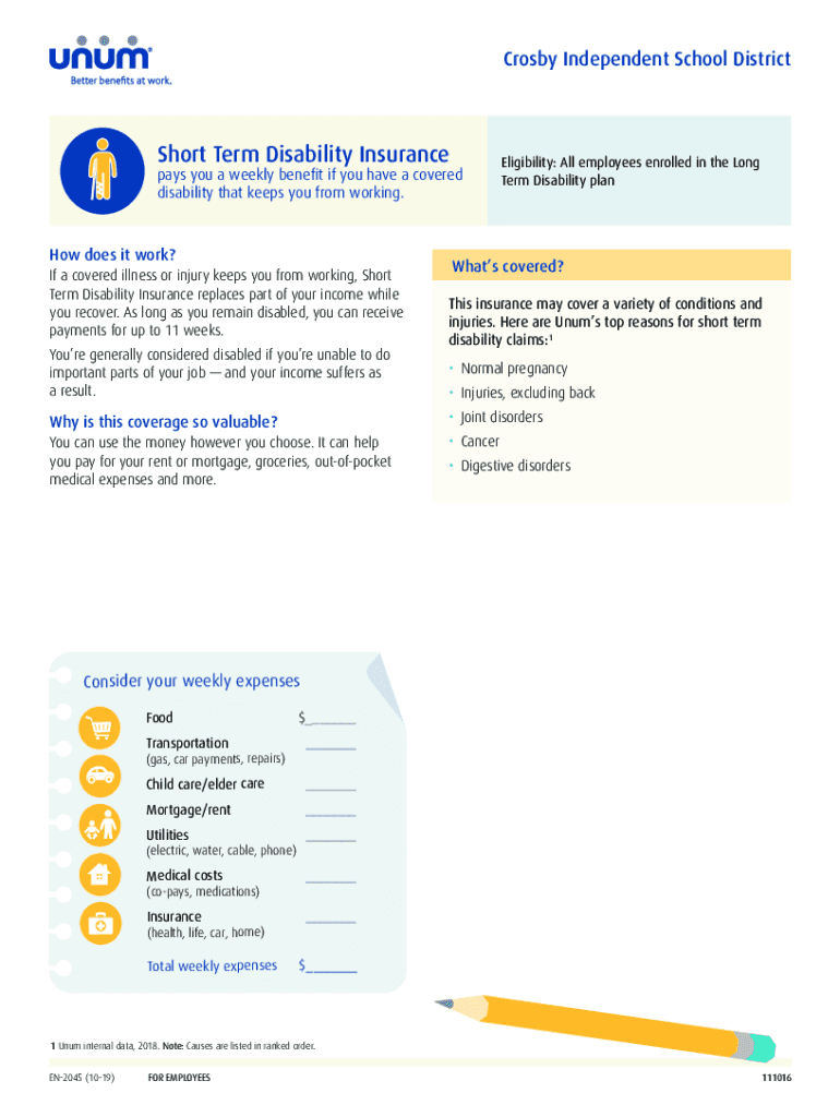 Get the free Short Term Disability Insurance Plans for Individuals & Families