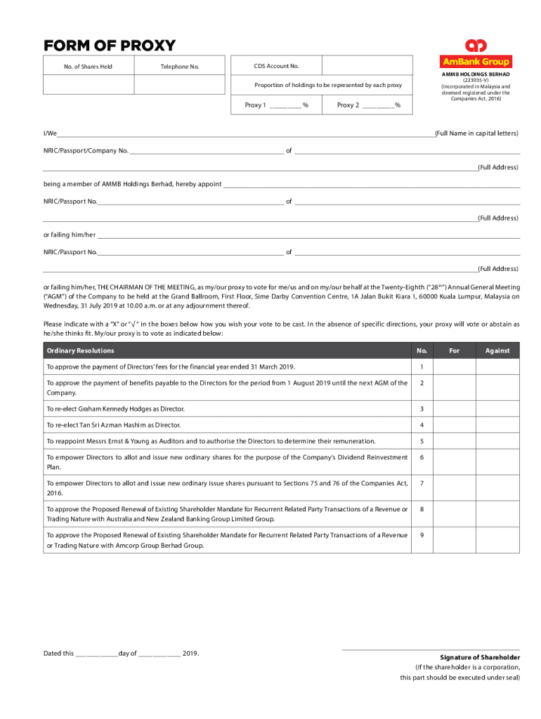 Get the free Form of Proxy - AmBank Group