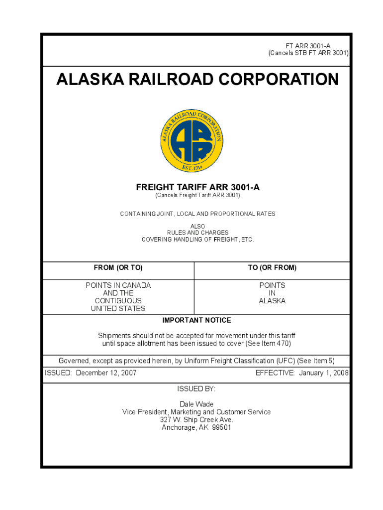 (Cancels STB FT ARR 3001)ALASKA RAILROAD CORPORATIONFREIGHT TARIFF ARR 3001A
