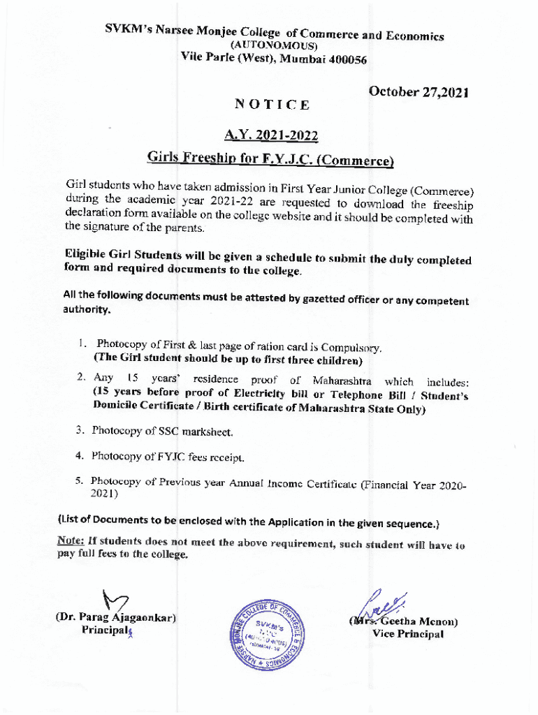 SARI VILE PALE RELEVANT MANDALSNARSEE MONEY COLLEGE OF COMMERCE & ECONOMICS (AUTONOMOUS) Vile Pale (West), Mumbai 400 056. Name of the Student: ___ (Surname) (Name) (Fathers Name) Class:F.Y.J.C. Div.: