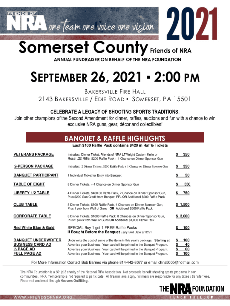 Somerset County Friends of ANNUAL FUNDRAISER ON BEHALF OF THE NRA FOUNDATIONSEPTEMBER 26, 2021 2:00 PM