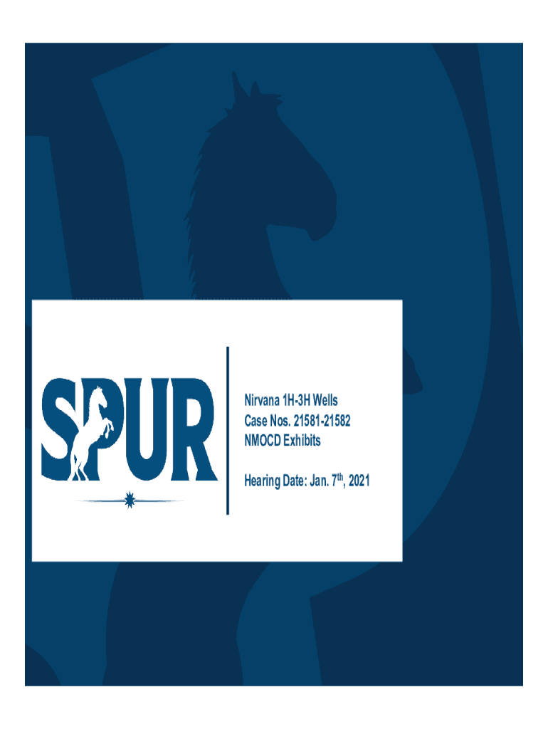 Nirvana 1H3H Wells Case Nos. 2158121582 NM OCD Exhibits Hearing Date: Jan. 7th, 2021STATE OF NEW MEXICO ENERGY, MINERALS AND NATURAL RESOURCES DEPARTMENT OIL CONSERVATION DIVISION APPLICATION OF SPUR