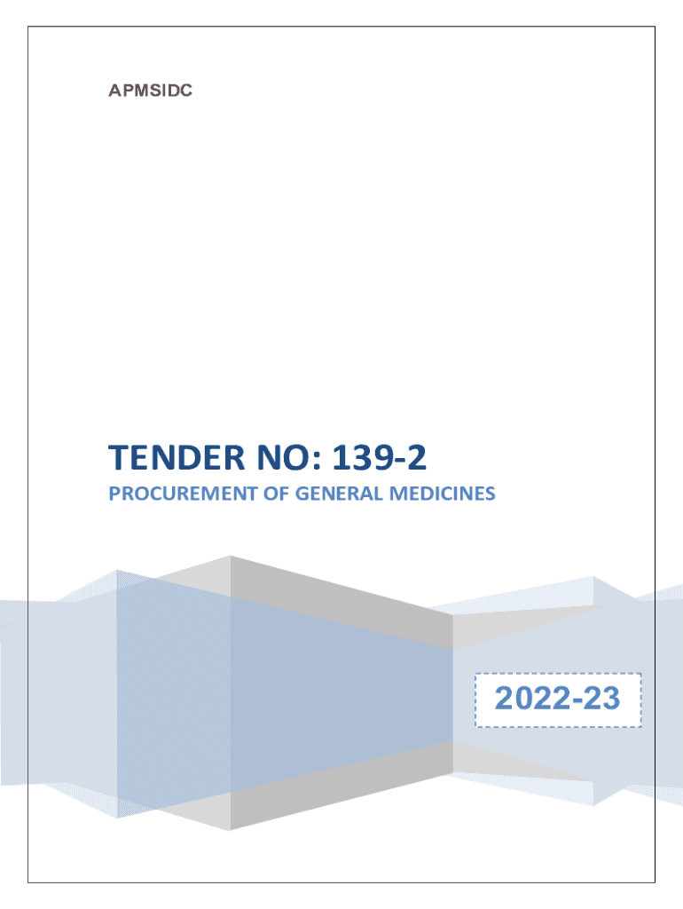 APMSIDCTENDER NO: 1392PROCUREMENT OF GENERAL MEDICINES202223DRUGSWINGTENDER FOR GENERAL MEDICINES2DRUGSWINGTENDER FOR GENERAL MEDICINESTENDER NO: 1392/ASIDE/MEDICINE WING/202223TENDER FOR SUPPLY OF