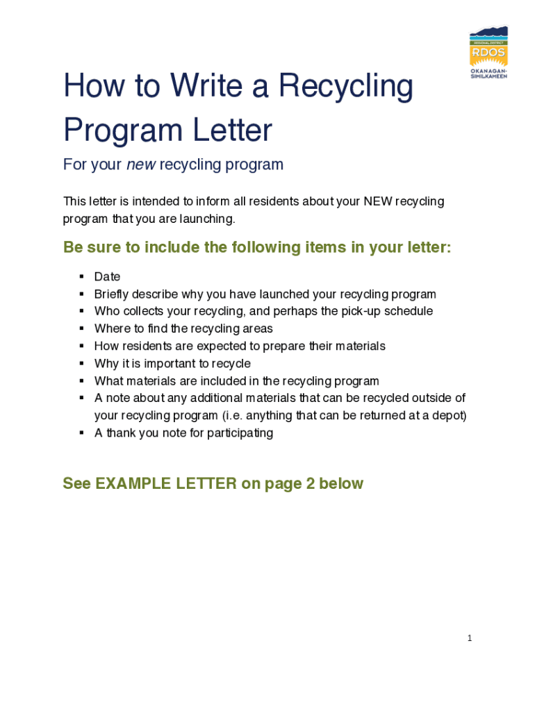 How to Write a Recycling Program Letter For your new recycling program This letter is intended to inform all residents about your NEW recycling program that you are launching. Be sure to include the