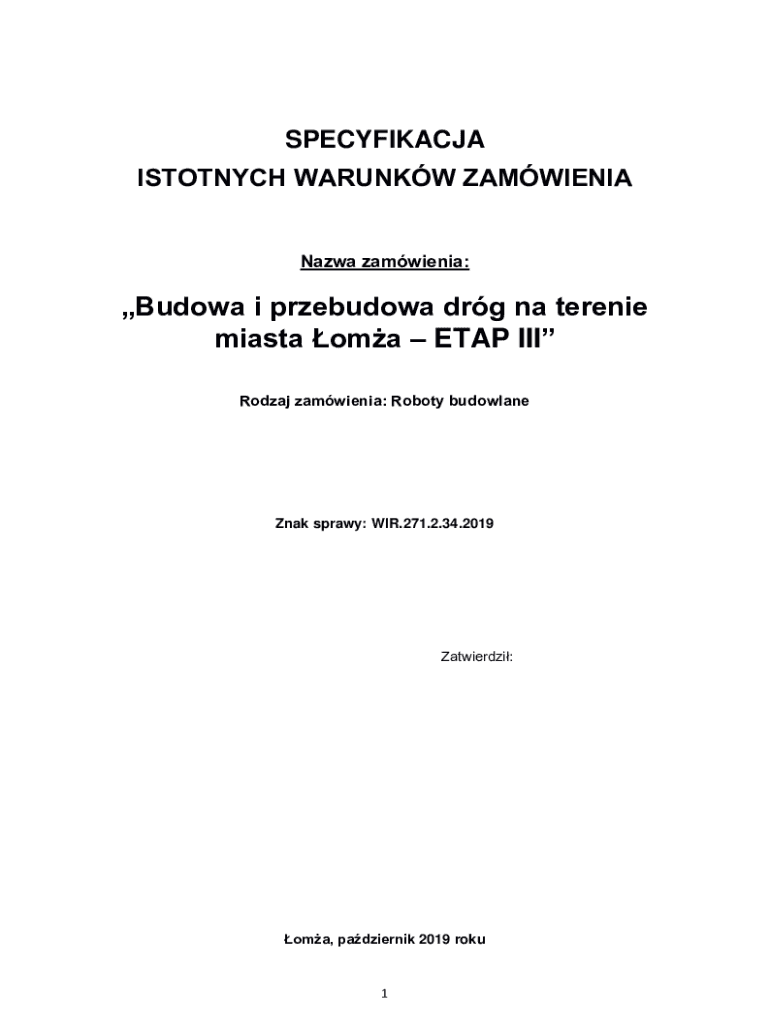 Rodney zamwienia: Robot budowlaneZnak spray: WIR.271.2.34.2019Zatwierdzi:OMA, padziernik
