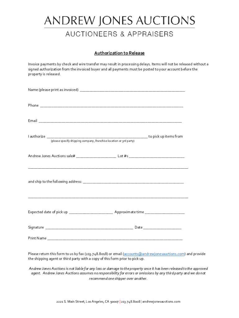 Authorization to Release Invoice payments by check and wire transfer may result in processing delays. Items will not be released without a signed authorization from the invoiced buyer and all payments