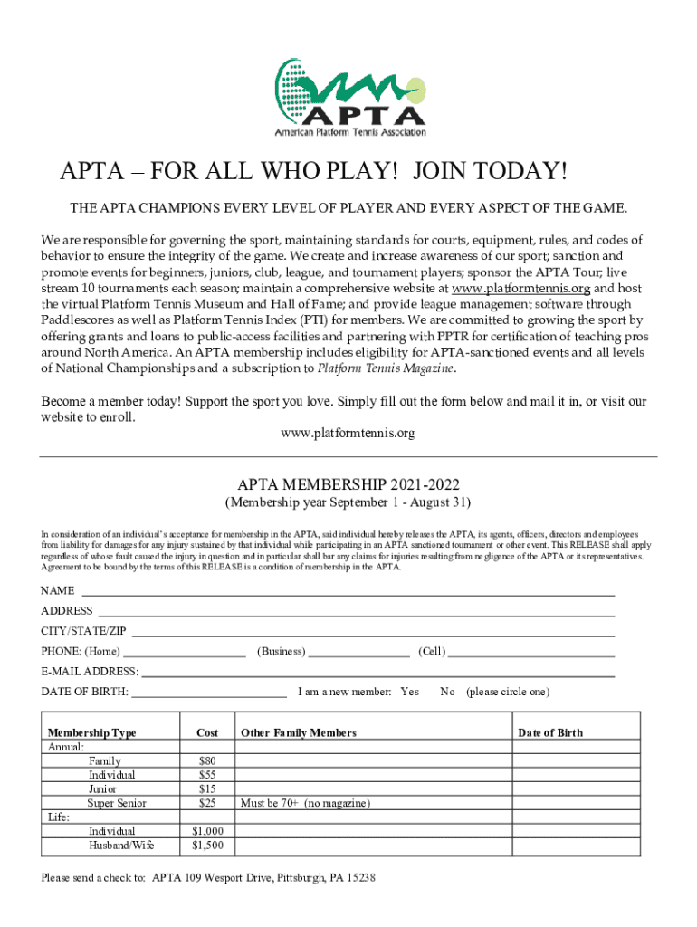 APA FOR ALL WHO PLAY! JOIN TODAY! THE APA CHAMPIONS EVERY LEVEL OF PLAYER AND EVERY ASPECT OF THE GAME. We are responsible for governing the sport, maintaining standards for courts, equipment, rules,
