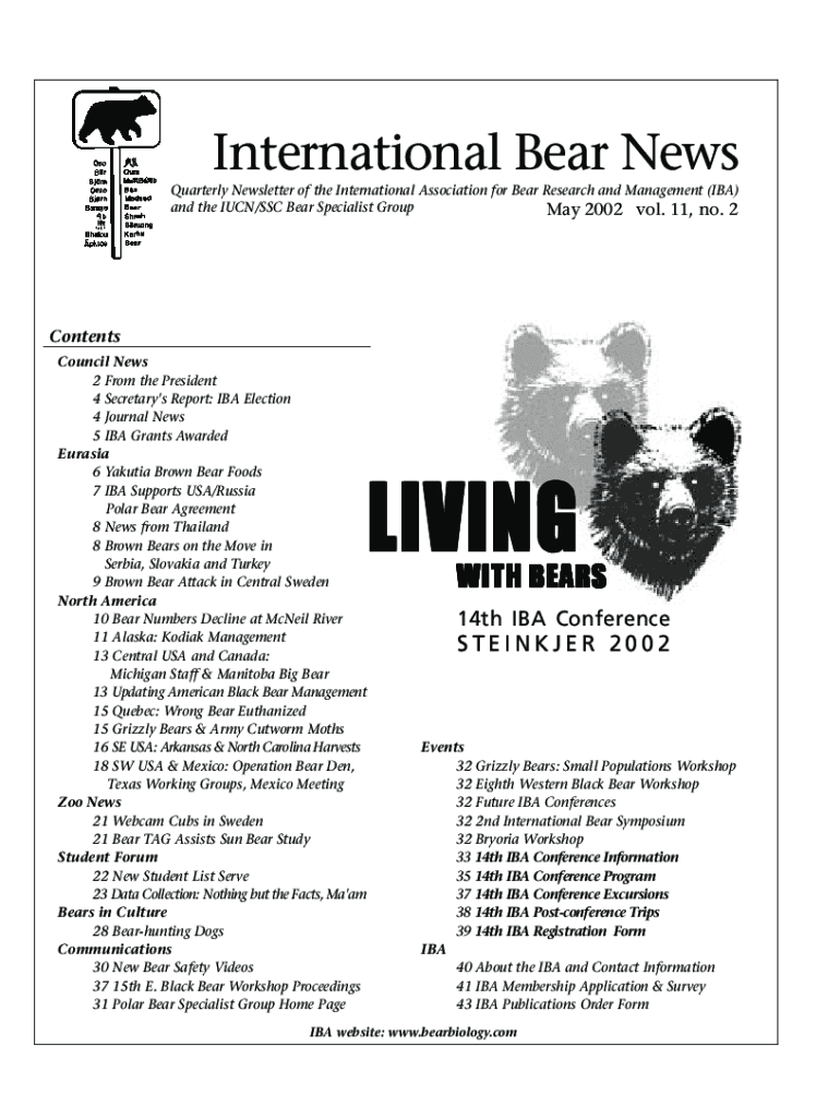 International Bear News Quarterly Newsletter of the International Association for Bear Research and Management (IBA) and the IUCN/SSC Bear Specialist Group May 2002 vol. 11, no. 2Contents Council