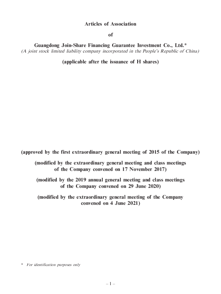 Articles of Association of Guangdong Join Share Financing Guarantee Investment Co., Ltd.* (A joint stock limited liability company incorporated in the Peoples Republic of China)(applicable after the