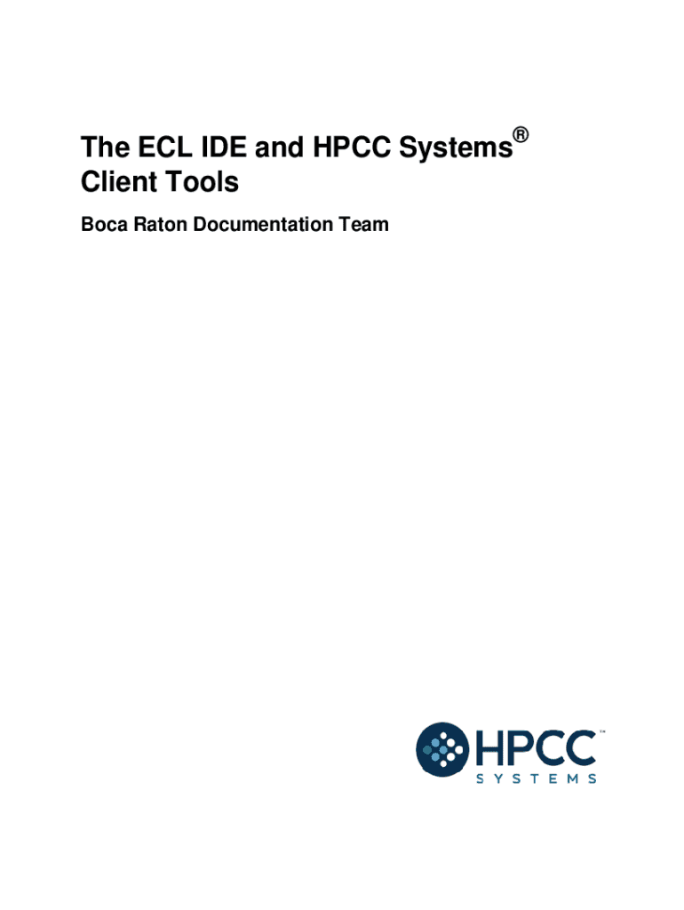Boca Raton Documentation Teethe ECL IDE and PCC Systems Client Tools ECL IDE and PCC Systems Client Tools
