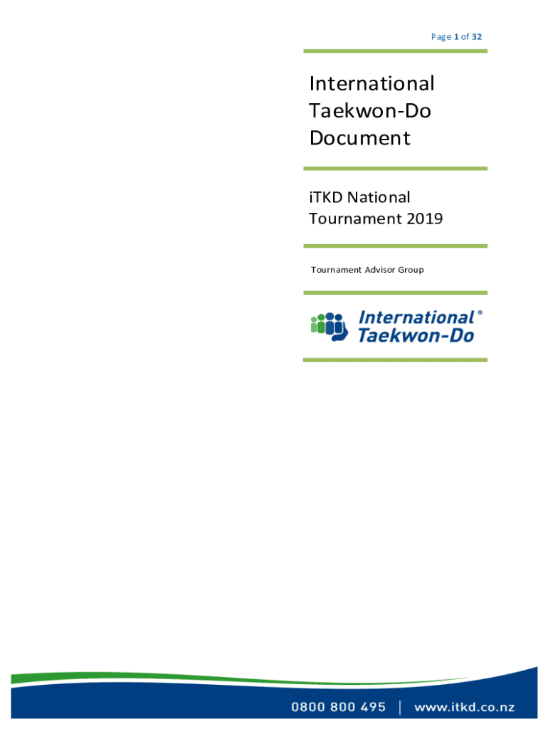 Page1of32International TaekwonDo Document international Tournament2019TournamentAdvisorGroupPage2of32 Tournament hosting.........................................................................................................................................................3