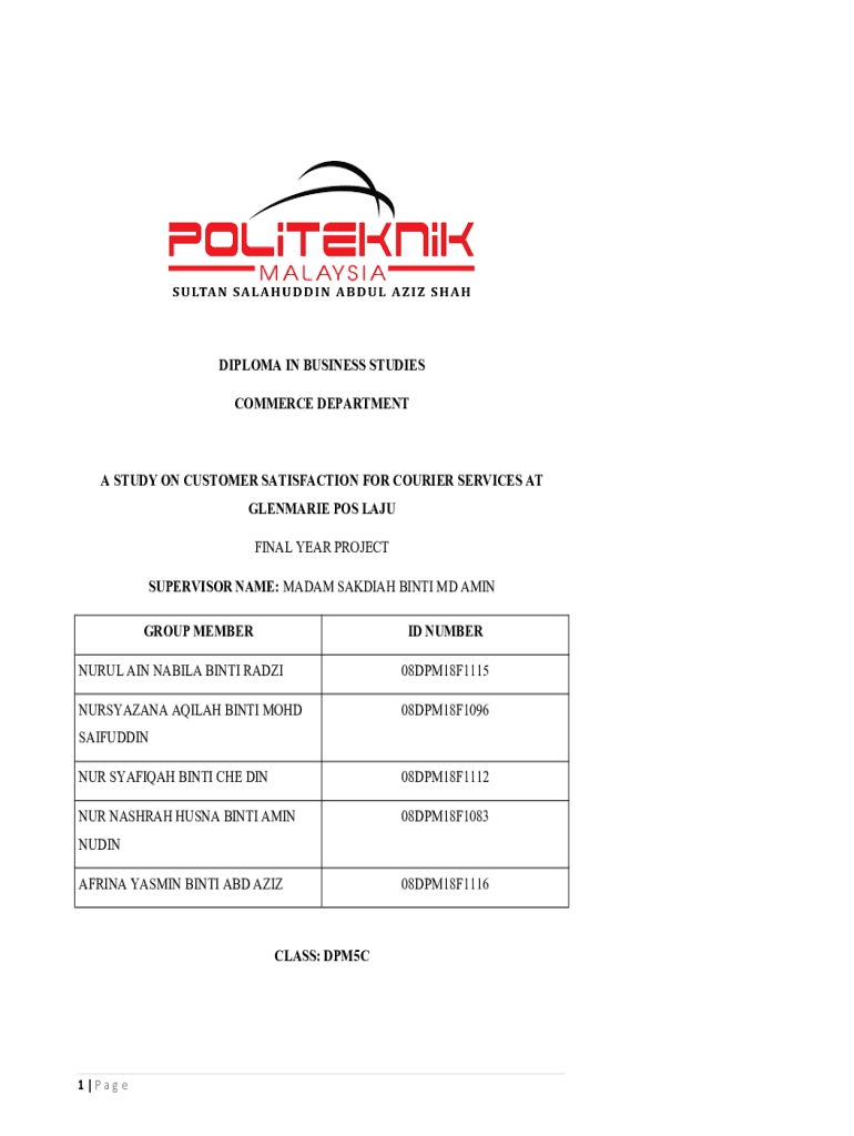 COMMERCE DEPARTMENT STUDY ON CUSTOMER SATISFACTION FOR COURIER SERVICES AT