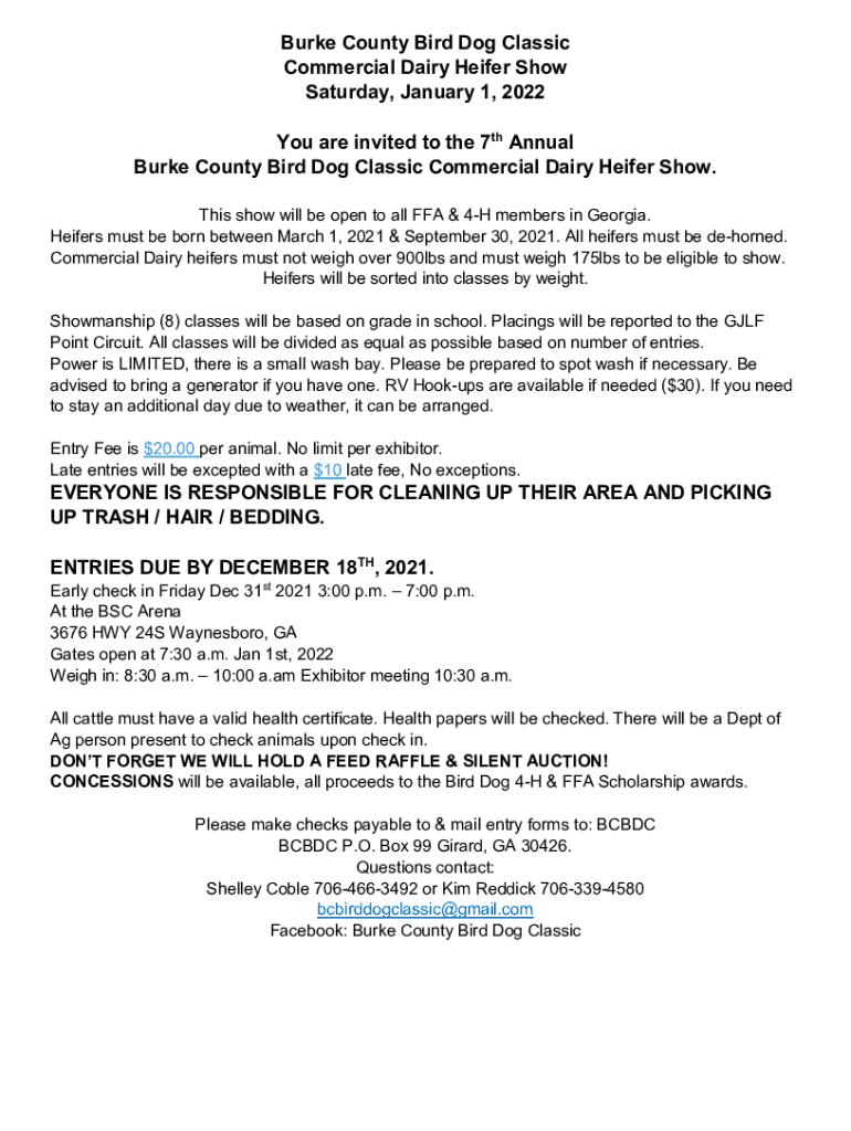 Get the free Burke County Bird Dog Classic Commercial Dairy Heifer Show