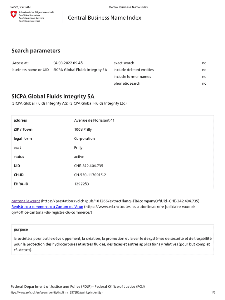 Obtenir le gratuit Search parameters SICPA Global Fluids Integrity SA Central ...