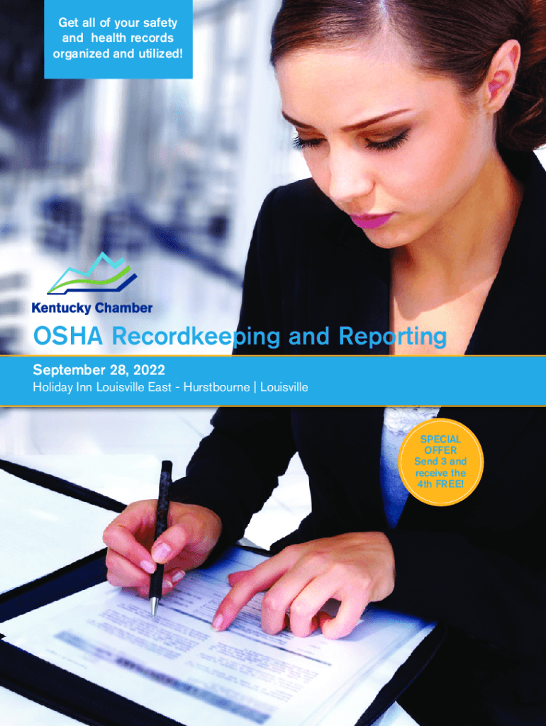 Get all of your safety and health records organized and utilized!OSHA Record keeping and Reporting September 28, 2022, Holiday Inn Louisville East Hurstbourne | LouisvilleSPECIAL OFFER Send 3 and