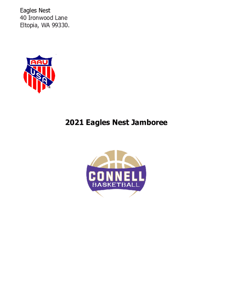 Eagles Nest 40 Ironwood Lane Estonia, WA 99330.2021 Eagles Nest Jamboree2021 Eagles Nest Jamboree Dates:December 4th / All teams are guaranteed 3 games. Location:Connell, WA 99326 (4 gyms within walking