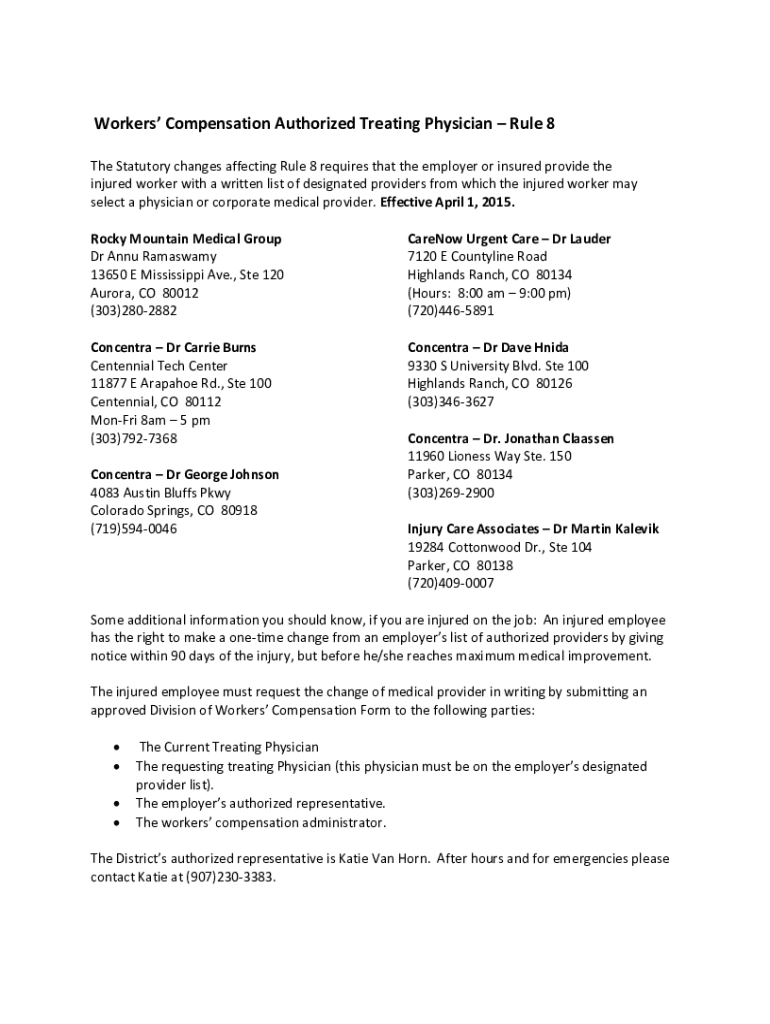 Get the free Workers' Compensation Authorized Treating PhysicianRule 8