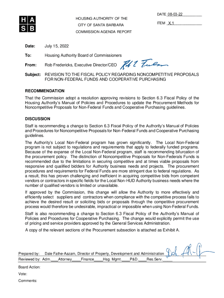 Get the free Subject: REVISION TO THE FISCAL POLICY REGARDING NONCOMPETITIVE PROPOSALS