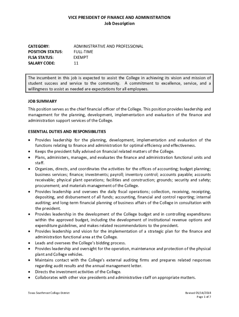 Get the free VP of Finance and Administration 05.14.18.docx