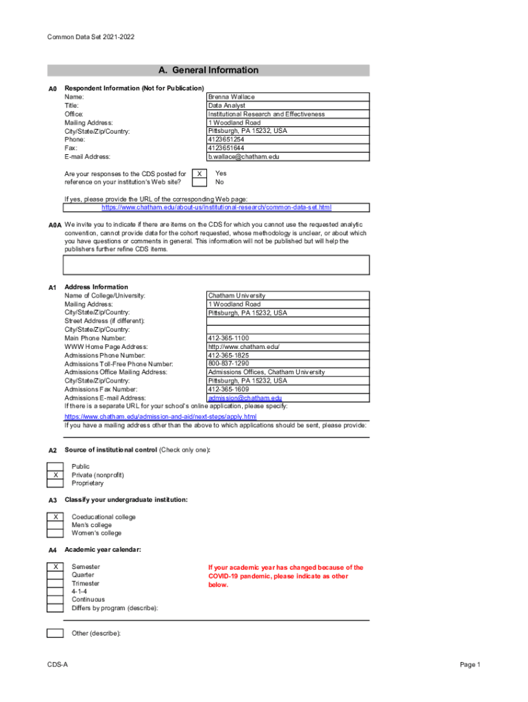 Common Data Set 20212022A. General Information A0Respondent Information (Not for Publication) Brenna Wallace Name: Data Analyst Title: Institutional Research and Effectiveness Office: 1 Woodland Road