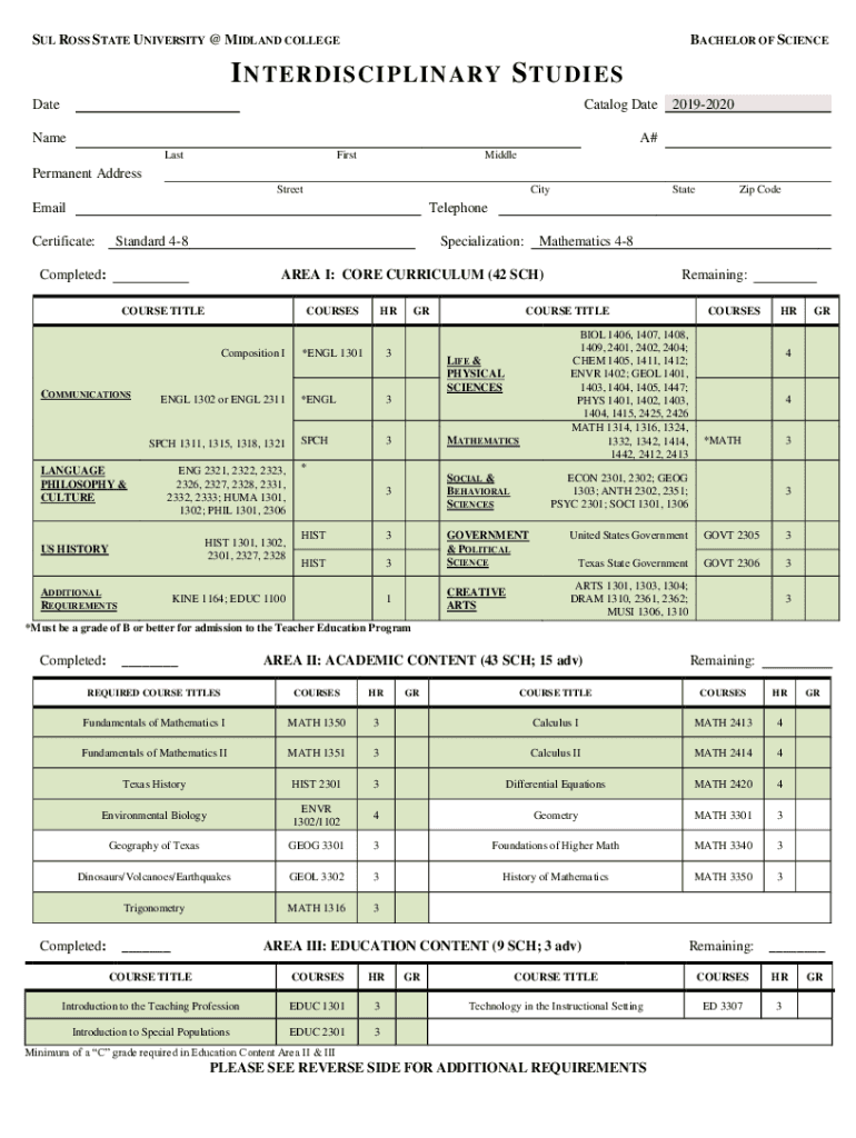 Get the free SRSUMC - Degree Plan for BS-Interdisciplinary Studies/Mathematics