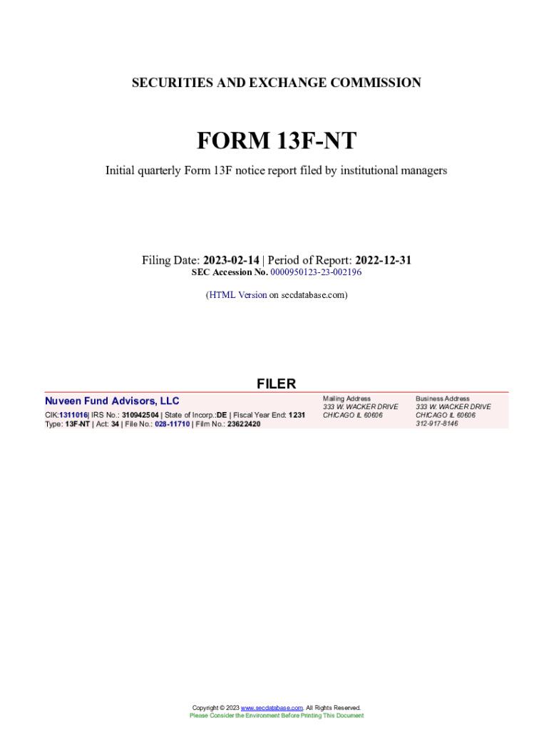 Get the free Nuveen Fund Advisors, LLC Form 13F-NT Filed 2023-02-14. Accession Number