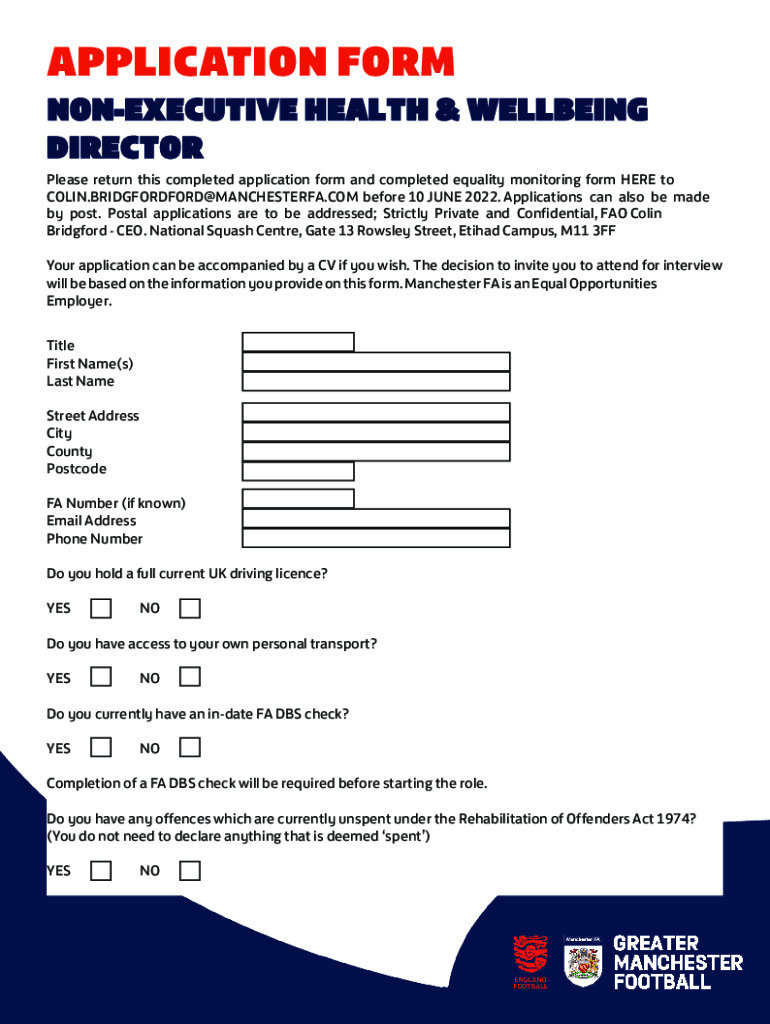 CONSECUTIVE HEALTH & WELLBEING DIRECTOR RECRUITMENT PACKING THIS PACK... 1 WHO ARE MANCHESTER FA? 2 ROLE DESCRIPTION 3 APPLICATION PROCESS 4 INDIVIDUAL ROLE PROFILE 5 PERSON SPECIFICATION 6 EXTRA
