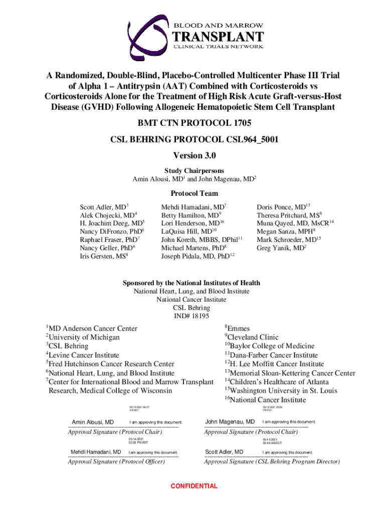 Get the free BMT CTN 1705 Protocol