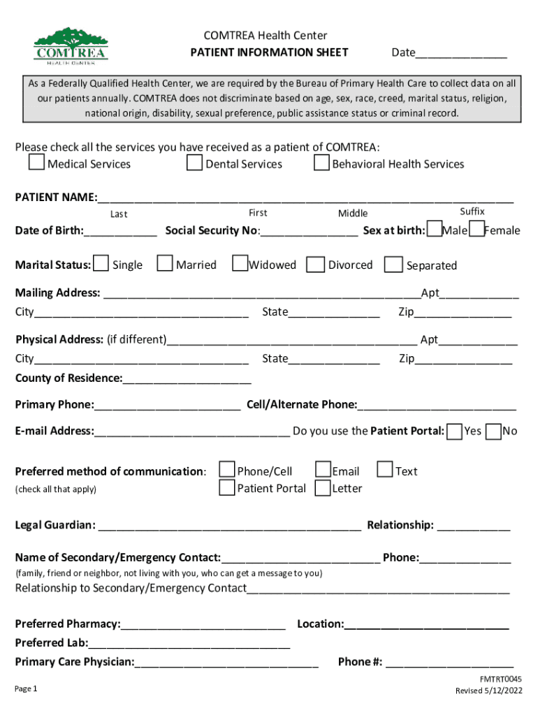 New patient - comtreaorg forms can be filled out electronically or manually, providing all required information about the individual seeking services.