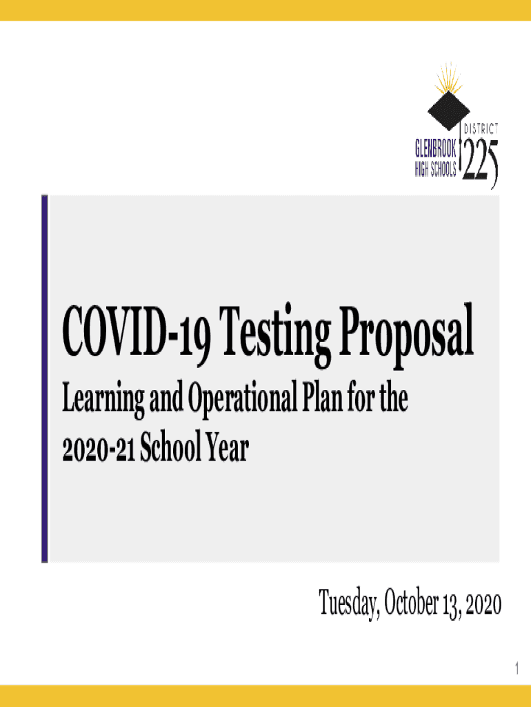 COVID-19 Testing Proposal Learning and Operational Plan for the 202021 School Year Tuesday, October 13, 2020 1Testing Exploration Process Partnered with other school districts, including New Trier