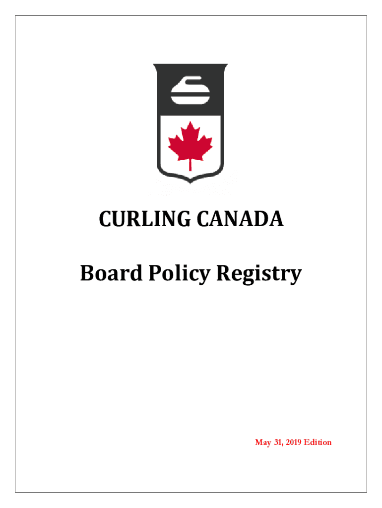 CURLINGCANADA BoardPolicyRegistryMay 31, 2019 Edition Guide to the Board Policy Registry (Updated June 15, 2011) What is Policy Governance? Policy Governance was developed by John Carver in response