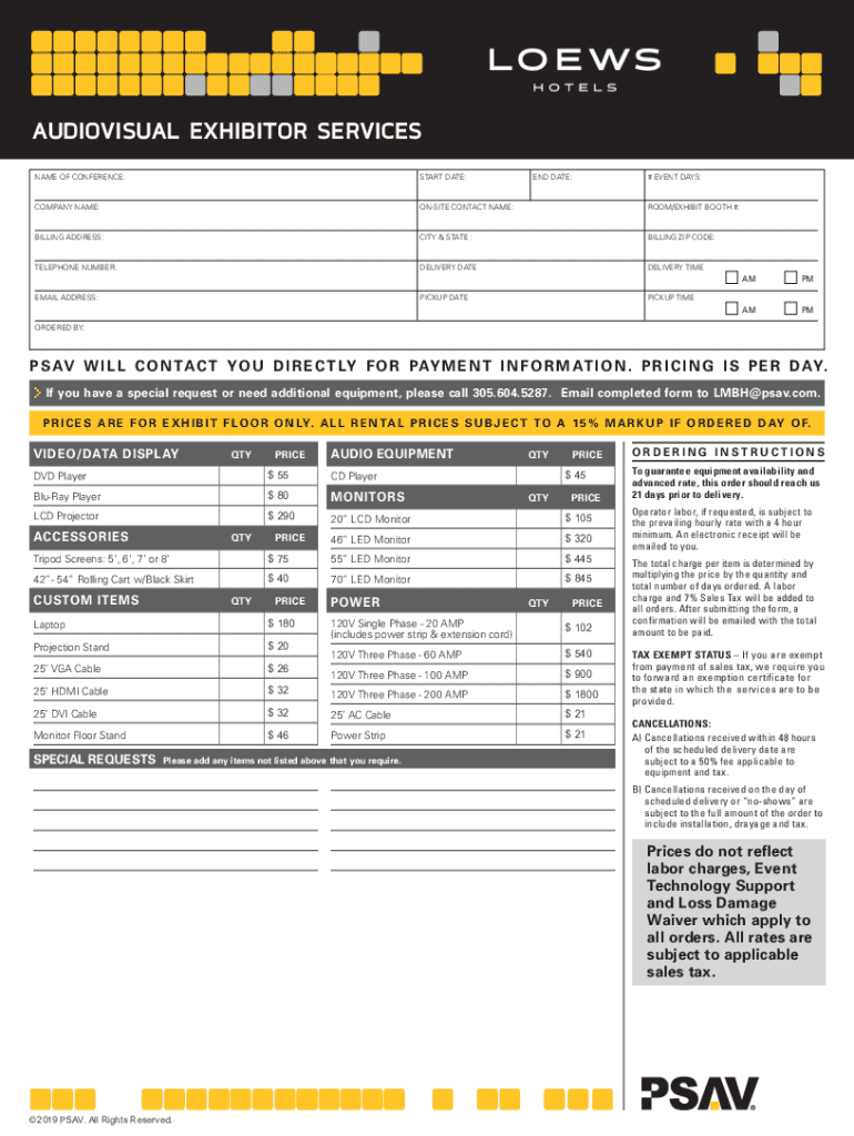 Get the free AUDIOVISUAL EXHIBITOR SERVICES - Events