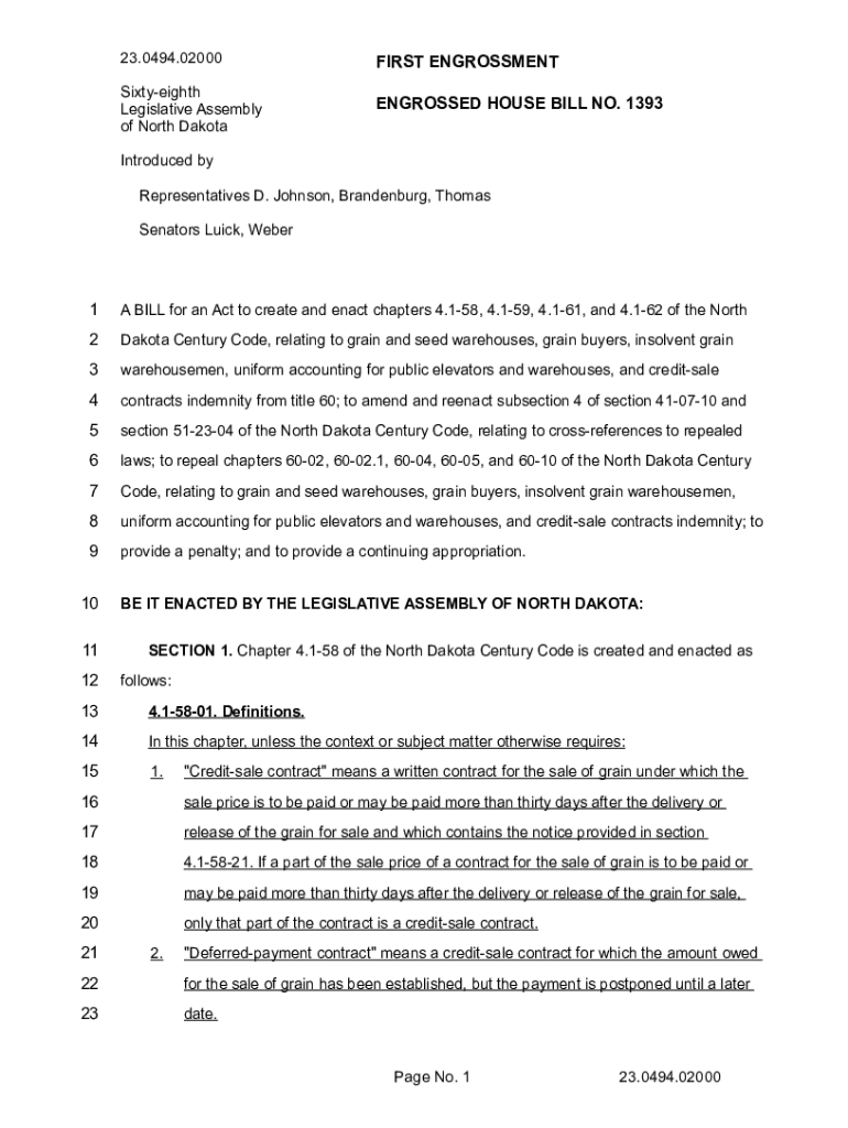 Get the free ENGROSSED House Bill No. 1393 FIRST ENGROSSMENT - Sixty-eighth Legislative Assembly ...