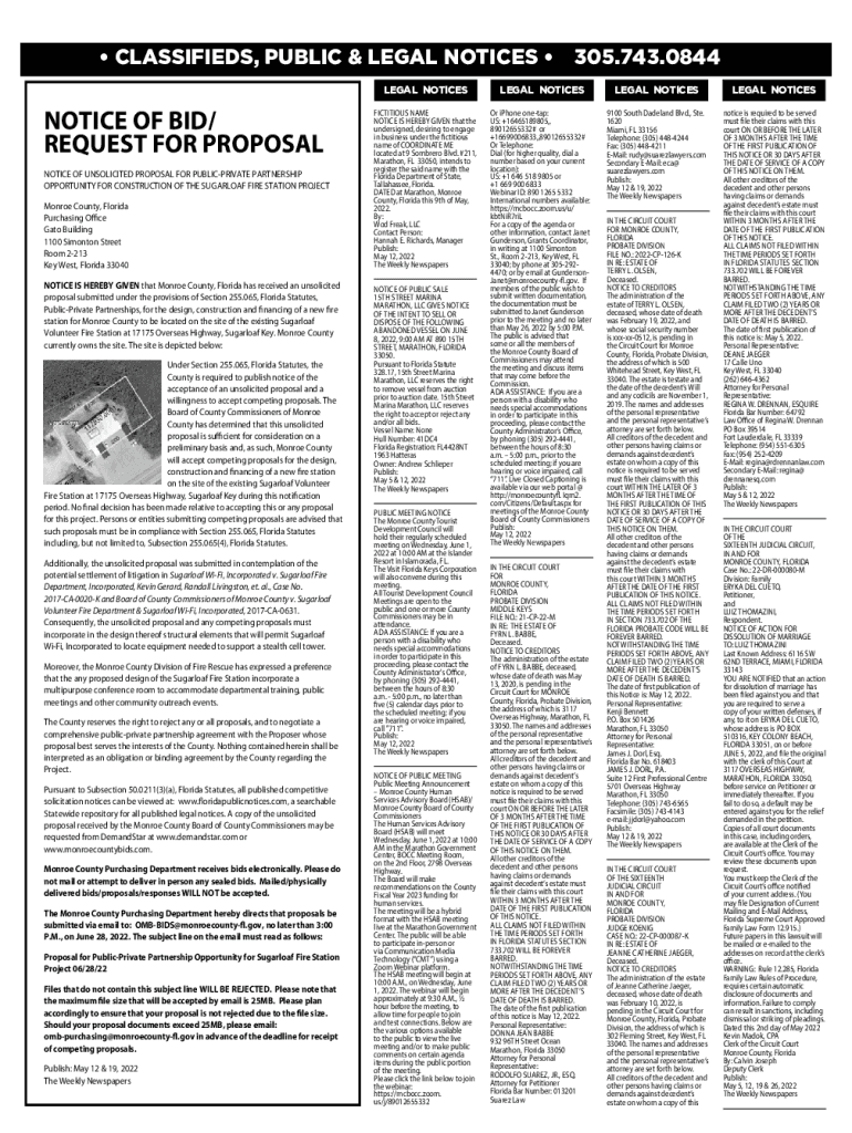 Get the free NOTICE OF BID/ REQUEST FOR PROPOSAL - Keys Weekly