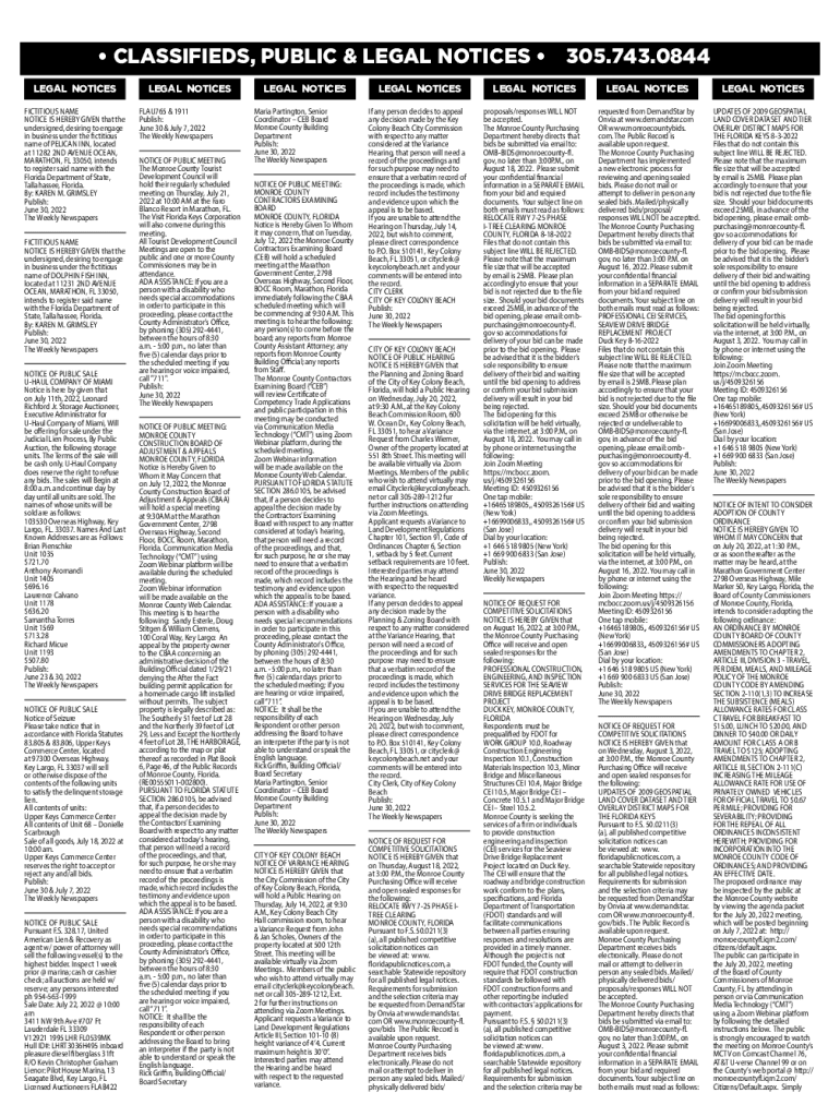 CLASSIFIEDS, PUBLIC & LEGAL NOTICES FICTITIOUS NAME NOTICE IS HEREBY GIVEN that the undersigned, desiring to engage in business under the fictitious name of PELICAN INN, located at 11282 2ND AVENUE