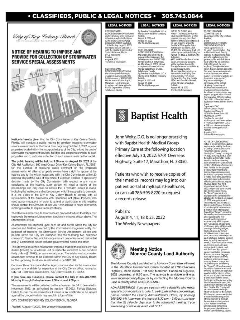SERVICE SPECIAL ASSESSMENTSLEGAL NOTICESLEGAL NOTICESLEGAL NOTICESLEGAL NOTICESFICTITIOUS NAME