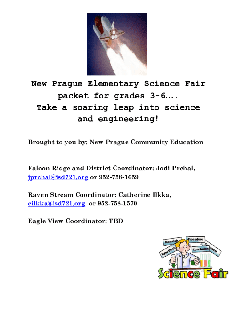 New Prague Elementary Science Fair packet for grades 36. Take a soaring leap into science and engineering! Brought to you by: New Prague Community EducationFalcon Ridge and District Coordinator: Jodi