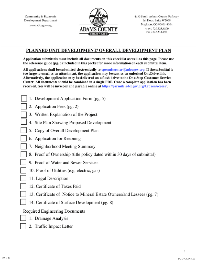 PLANNED UNIT DEVELOPMENT/ OVERALL DEVELOPMENT PLAN Application submittals must include all documents on this checklist as well as this page. Please use the reference guide (pg. 3) included in this