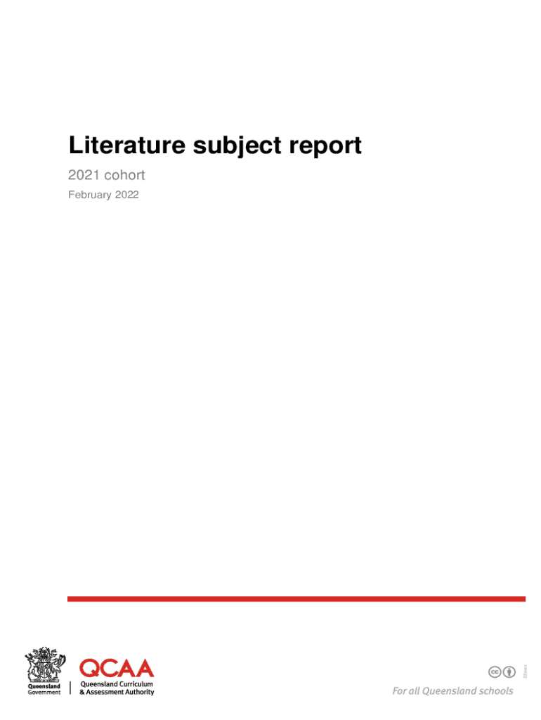 Literature subject report 2021 cohort22xxxxFebruary 2022ISBN Electronic version: 9781743781579 State of Queensland (NCAA) 2022 License: https://creativecommons.org/licenses/by/4.0 | Copyright notice: