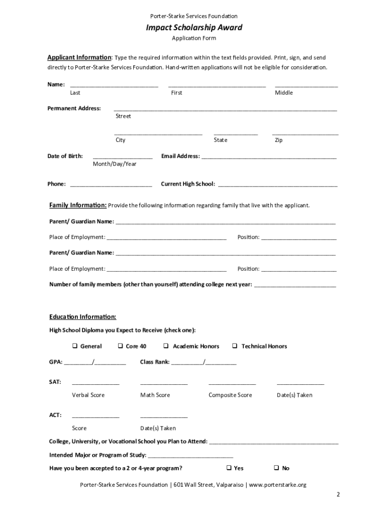 PorterStarke Services Foundation Impact Scholarship Award PorterStarke Services provides healthcare services throughout Northwest Indiana. It is our goal to enhance the quality of life within our