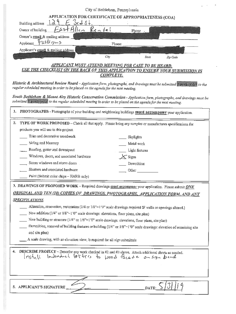 APPLICATION FOR CERTIFICATE OF APPROPRIATENESS (COA)