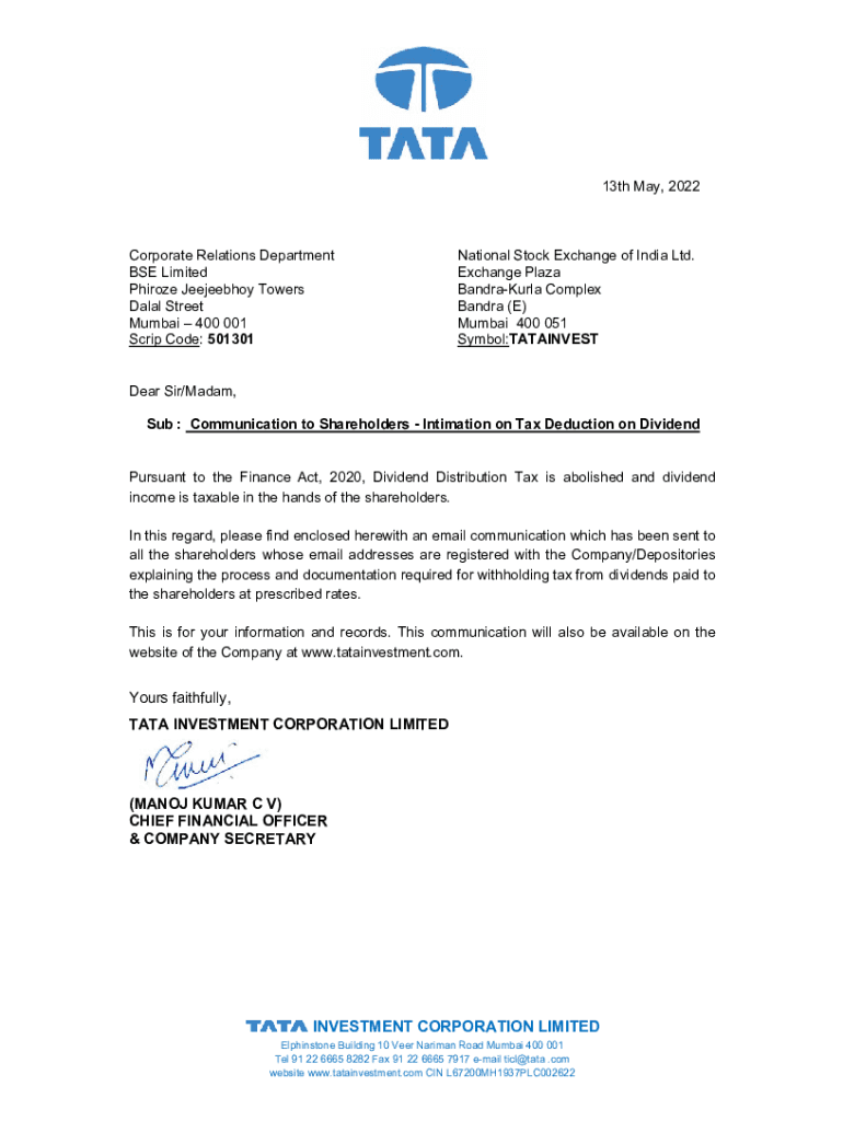 Scrip Code: 501301National Stock Exchange of India Ltd.
