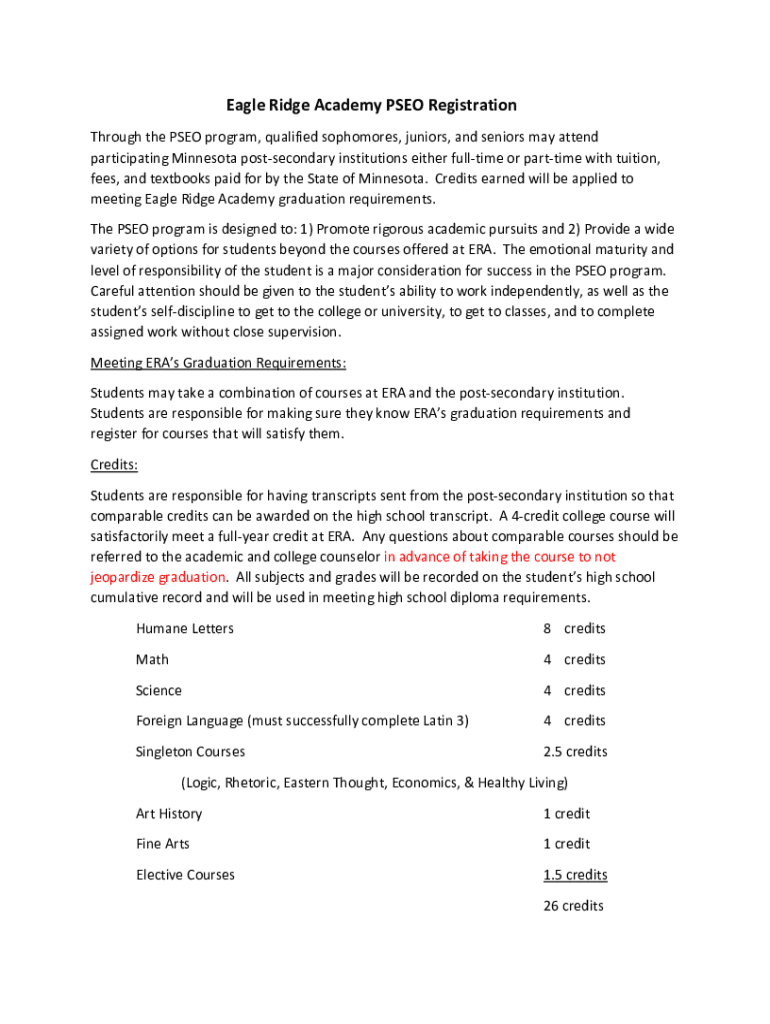 Get the free PSEO Registration Requirements - Eagle Ridge Academy ...