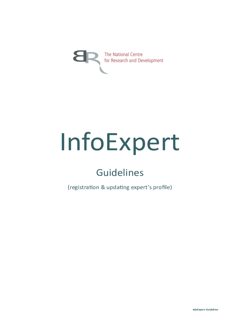 (registration & updating experts profile)Inexpert. GuidelinesDocument specificationVersionResponsibleChangesDate0.1Marta HffnerDocument creation19.01.20210.2Piotr NowakowskiProofreading19.01.2021InfoExpert.