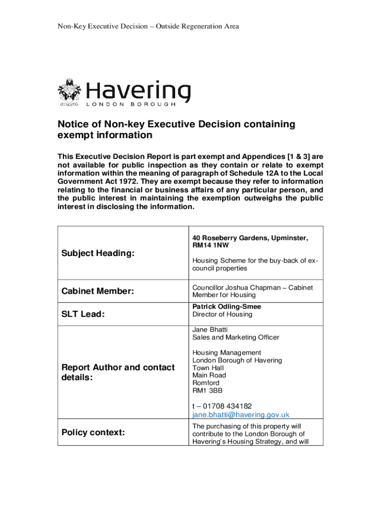 Get the free Non-Key Executive Decision - The London Borough of Havering