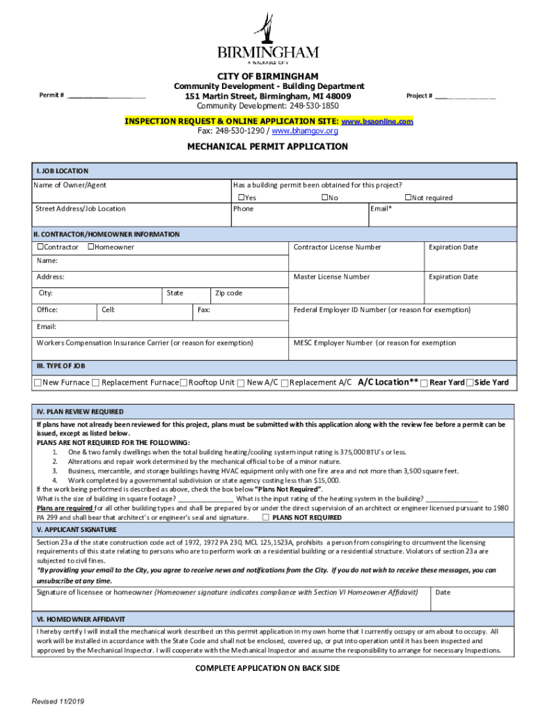 CITY OF BIRMINGHAMPermit # ______Community Development Building Department 151 Martin Street, Birmingham, MI 48009 Community Development: 2485301850Project #___INSPECTION REQUEST & ONLINE APPLICATION