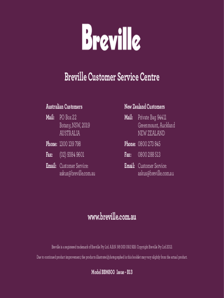 Fill out your breville customer service centre online with pdfFiller!