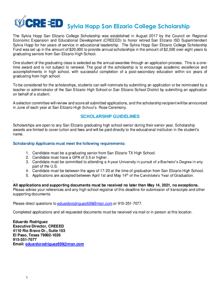 Get the free Sylvia Hopp San Elizario College Scholarship Fund - Region 19