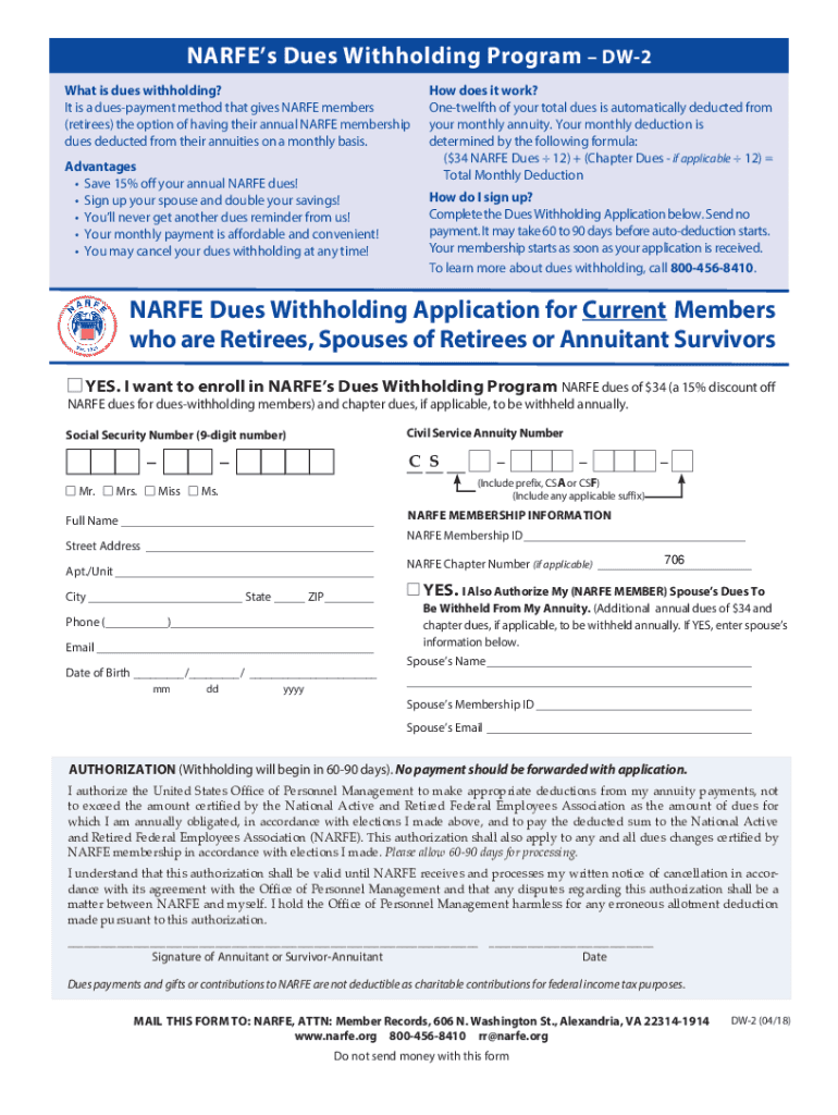 Get the free NARFE Dues Withholding Application for Current Members ...